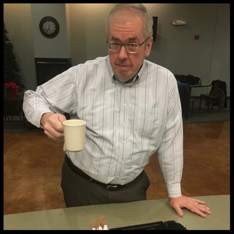 Dan Parker is finishing up his second and last term on the Elders. The Elders gather every Wednesday at 6:30am to pray, but we always start with coffee and conversation by the Acorn cafe or sitting by the fireplace. For 6 years I've been offering Dan coffee. He usually comes in carrying a Mountain Dew. I've even offered him Mountain Dew flavored coffee (no such thing but the power of suggestion can be a powerful thing). For 6 years he's said no. Until last week. People do change for the better! Dan and the Elders pray for our congregation, meet with new member candidates, teach the new member class, help craft theological position papers, and so much more. Thanks, Dan, for your service.